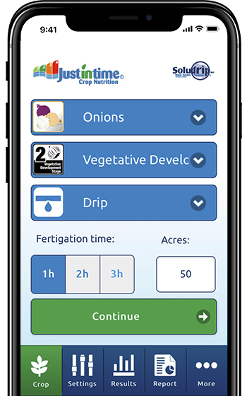 very easy to mix, flows through the tape very easily and with a very good distribution into the bed. Soludrip® growth is a lot better, and we end up with real good size and real good uniformity across all the onions. I found a real increase in production using Soludrip®